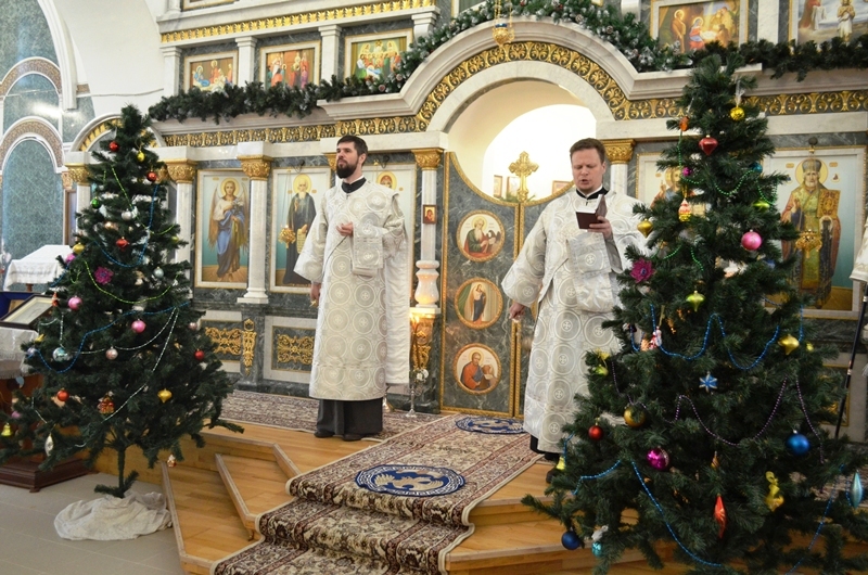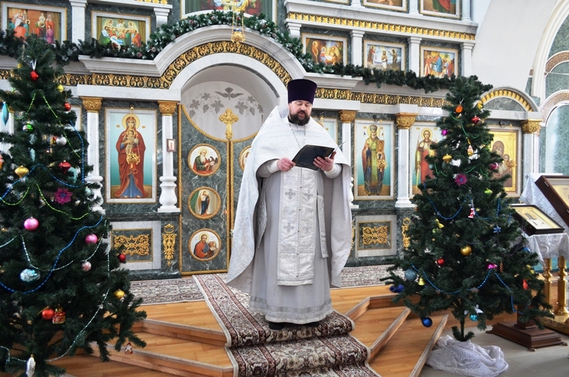 Перед причастием протоиерей Евгений Бей огласил Рождественское послание Святейшего Патриарха Московского и всея Руси Кирилла.