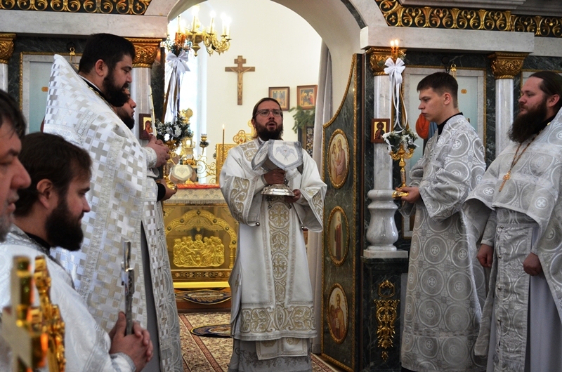 В Казанском храме г. Павловска Правящий Архиерей возглавил Божественную литургию. Его Преосвященству сослужили: благочинный Павловского церковного округа иерей Максим Богомолов, секретарь епархиального управления иерей Иаков Калинин, настоятель Покровского храма г. Павловск протоиерей Евгений Бей, настоятель Благовещенского храма с. Лосево игумен Леонид (Романов), настоятель Никольского храма с. Бабка игумен Симон (Камнев), настоятель храма Архангела Михаила с. Воронцовка иерей Виктор Семенов, настоятель храма Александра Невского с. Петровка иерей Андрей Коротя, настоятель Свято-Троицкого храма с. Елизаветовка иерей Михаил Рязанцев, настоятель храма апостола Павла г. Павловск иерей Павел Белов, клирик Казанского храма иеромонах Антоний (Зубов). Диаконский чин возглавил Марк Мясоедов, клирик Ильинского кафедрального собора г. Россошь. Также диакон Иоанн Коротких, клирик Казанского храма г. Павловска.